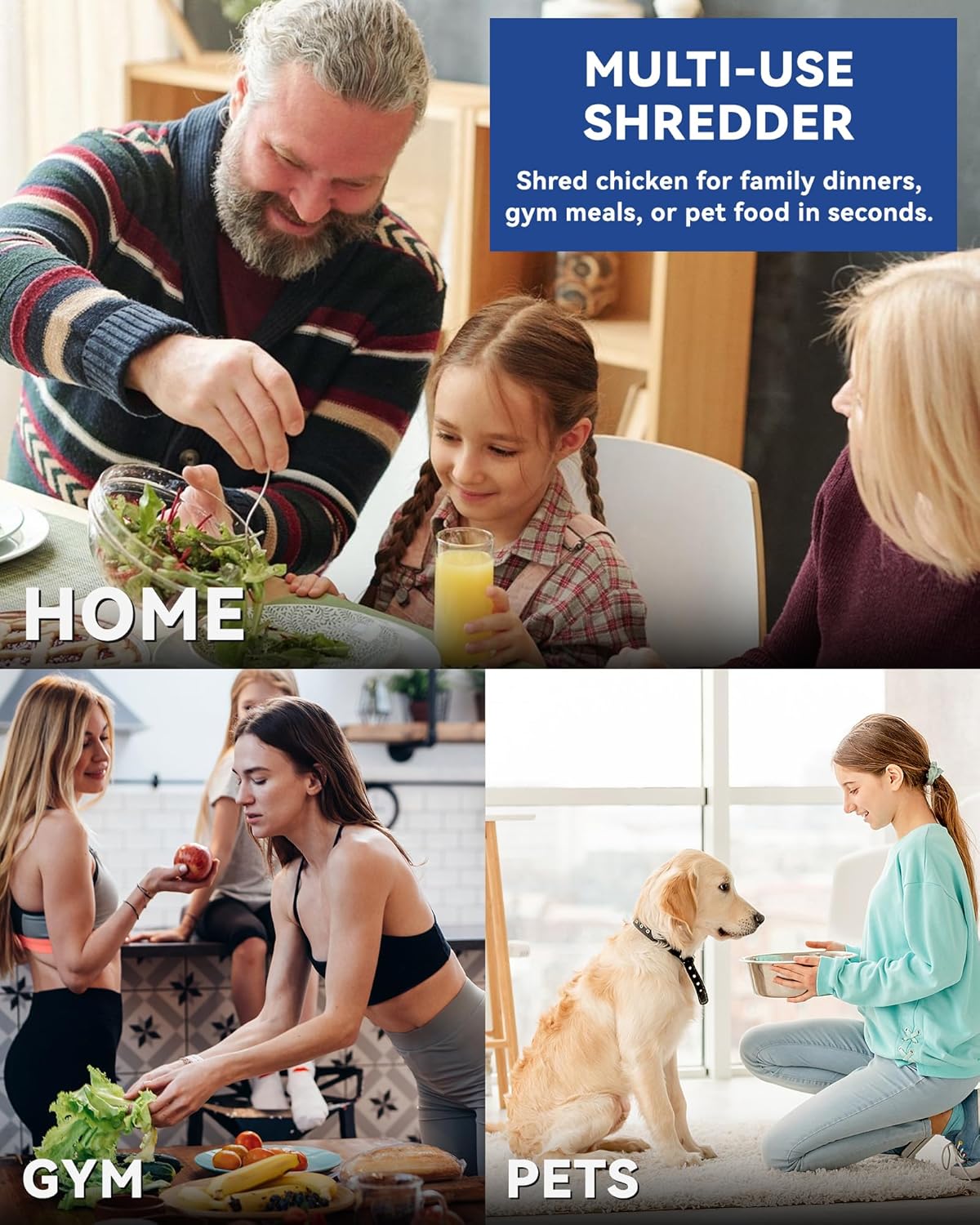 • 【Great Kitchen Helper】Perfect for fitness enthusiasts, barbecue lovers or those who love to cook, this meat grinder effectively shreds chicken, pork, beef and other vegetables, widely used for tacos, quesadillas and BBQ pork, tuna salad, buffalo chicken salad, casserole dishes. In addition, pet lovers can use this meat slicer to shred chicken for pet food. It makes an ideal gift for family and friends on any special day.