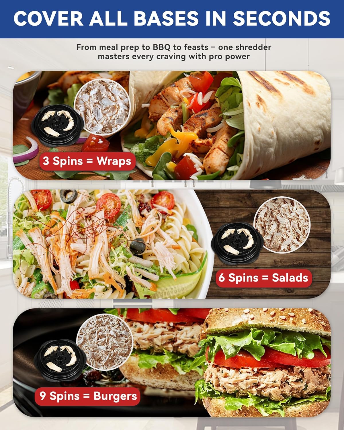 • 【Effective Shredding】Cut cooked meat into small pieces and place in the food shredder and cover. Turn the lid with the handle to shred the meat in seconds.